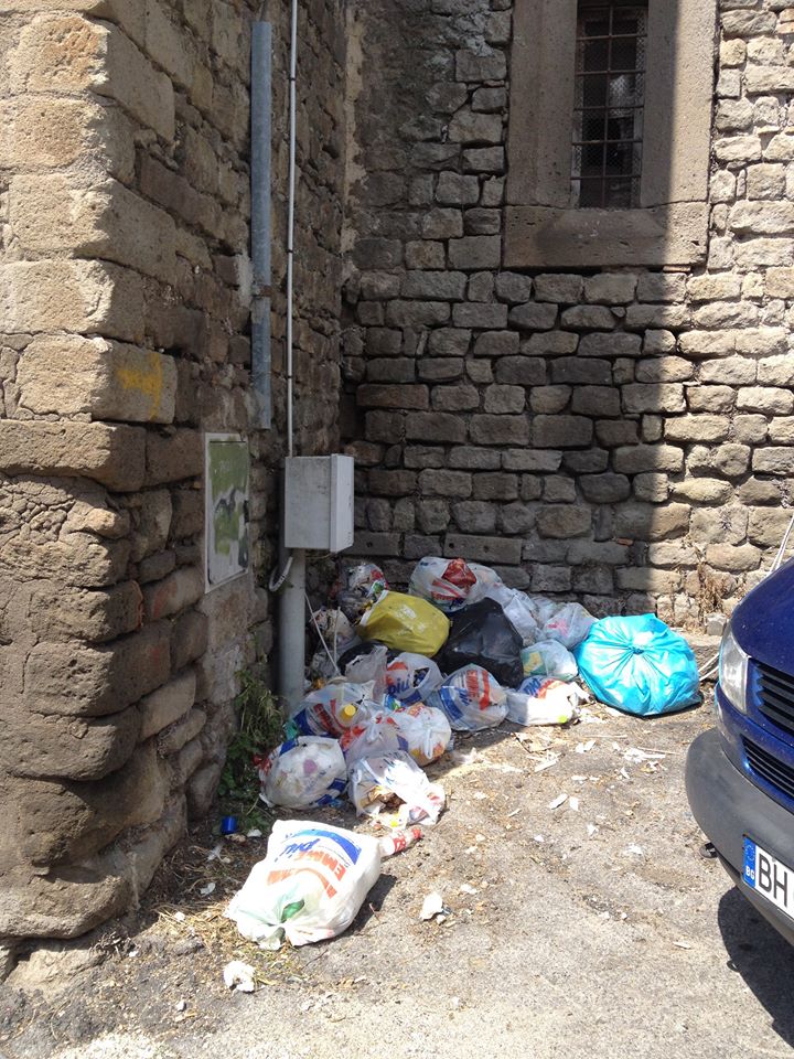 Mi ci sono imbattuto stamani e me ne sono accorto solo perchè con il motorino ho rischiato di investire tre bei topi (anzi, non li chiamerei in questo modo ma con una espressione ben più colorita). mi sono fermato e dietro alcune auto ho scoperto questo cumulo di rifiuti, che avevo segnalato un mese fa circa, ma oggi è molto più consistente e la foto ahimè, non fa assaporare l’odore. Ritengo sia un dovere segnalare e visto che la precedente segnalazione non ha sortito effetto mi rivolgo direttamente alla stampa anche per gli aspetti di tipo sanitario che la situazione in atto potrebbe generare. Ah una ultima considerazione: allego anche una foto di questa mattina al sacrario, nell’area dove ieri si è svolto il mercatino dei prodotti regionali. Questo era lo stato della mattinata, con tappeti, scatole e un microonde lasciati li, sul suolo pubblico. Mi vengono in mente le parole di alcuni recenti articoli sulla cultura, sugli eventi e sulle possibilità che abbiamo di far venire persone in questo posto. Con tutto il bene che voglio a Viterbo mi tornano in mente gli insegnamenti della nonna: “Se si vuole invitare qualcuno a casa propria, prima è conveniente dare una sistemata..” semprechè, casa propria, sia in grado di garantire delle condizioni minime di vivibilità.