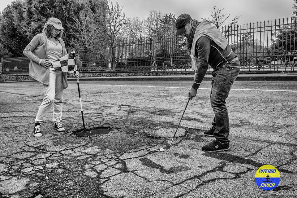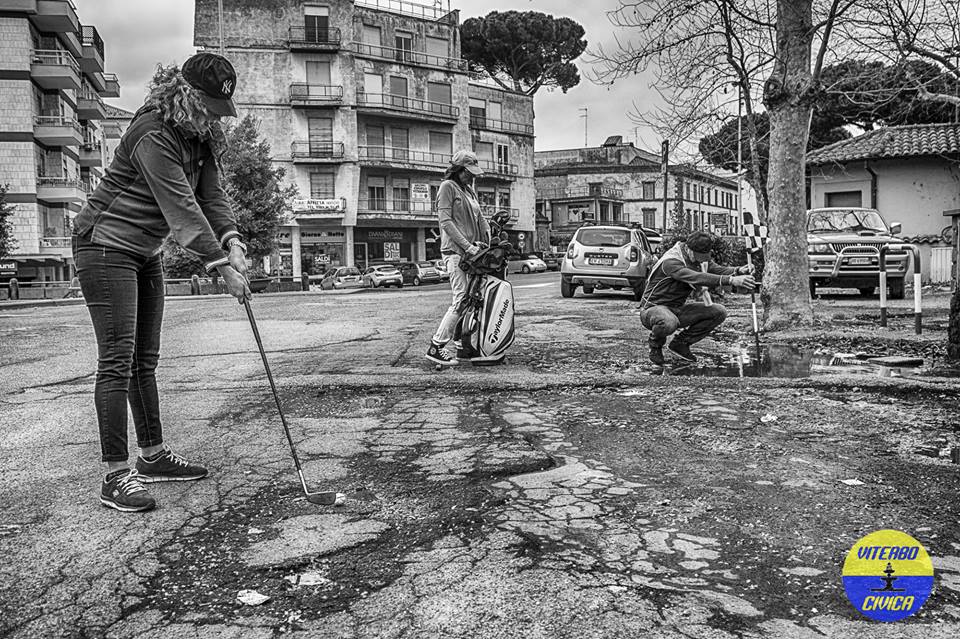 Nessun cinema, niente teatro, dopo la chiusura della biblioteca, ci sembra inutile e controproducente insistere ancora con questa cultura. La vera frontiera del turismo è il lusso. E noi viterbesi possiamo offrire a una clientela raffinata, campi da golf a vari livelli di difficoltà, inseriti in un incantevole contesto. Altro che il banale green, noi offriamo la possibilità di giocare a golf in un percorso lungo le mura medievali, nel borgo storico e nel parco comunale.