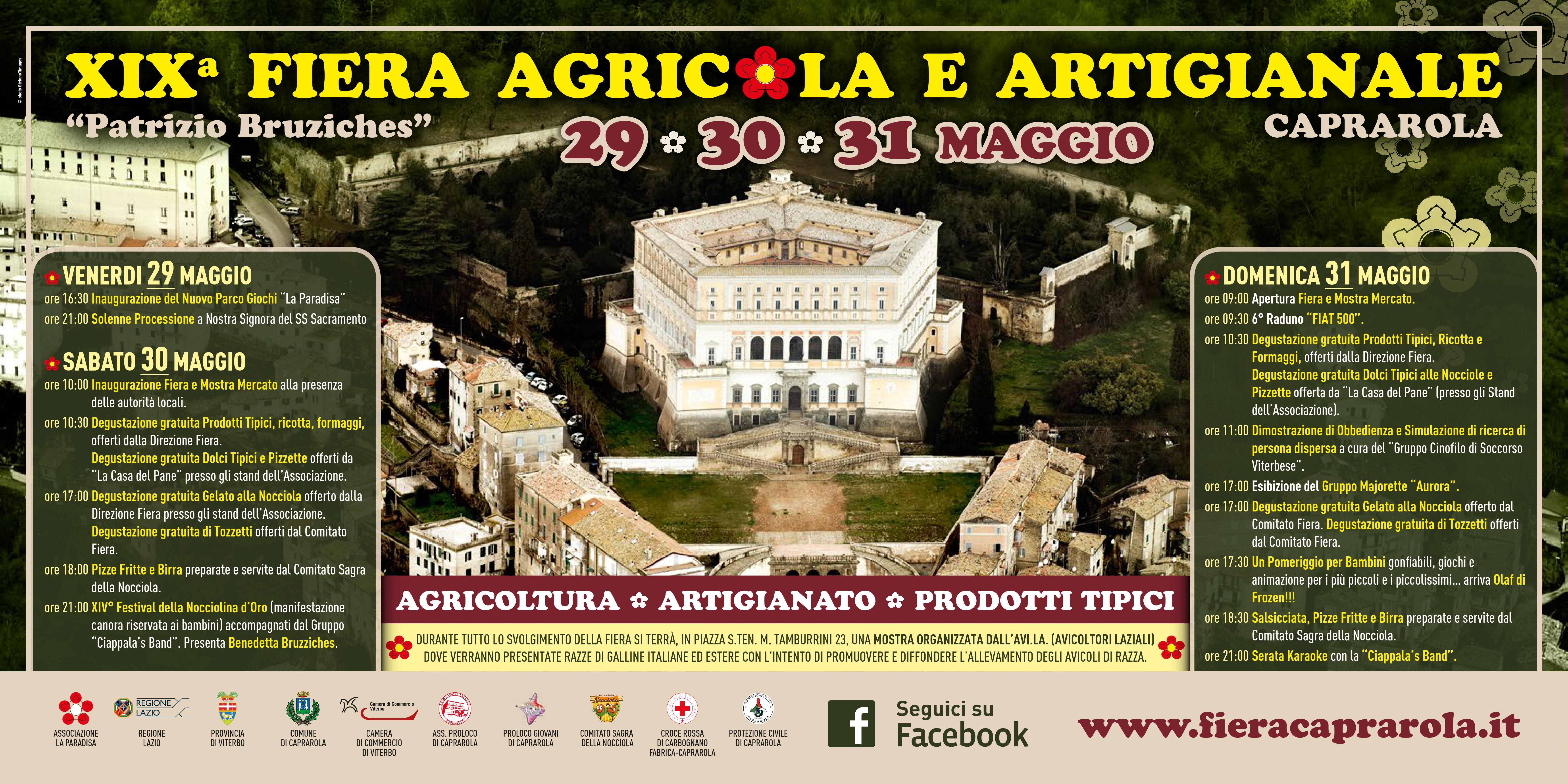 FIERA AGRICOLA – Caprarola 29-31 maggio 2015 Posted by redazione In Notizie Tagged fiera agricola Comments 0 A Prev SAN SEBASTIANO IN FIORE – 30-31 Maggio 2015 Orte Next CONCORSI – “Donne tra ricordi e futuro”, cerimonia al Castello di Torre Alfina No Comments Leave a Comment Fai clic qui per annullare la risposta. First Name Last Name Email Website Your message Submit Comment Hai disabilitato Javascript. Per poter postare commenti, assicurati di avere Javascript abilitato e i cookies abilitati, poi ricarica la pagina. Clicca qui per istruzioni su come abilitare Javascript nel tuo browser. Related Posts Alla scoperta del verde terapeutico alla rassegna Verdi Contenti Set 9, 2023 Mostra su Michelangelo, taglio del nastro con il ministro Sangiuliano Ott 27, 2022 Alla contrada San Biagio il Palio dei Borgia 2022 Giu 20, 2022 Focus sulla “Cittadinanza”: autorevoli esperti si confrontano sull’opera di Giovanni Moro Ott 25, 2021 “Know Your Neighbour – conosci il tuo vicino”, al via il nuovo progetto di integrazione sociale di Circomare Ott 20, 2021 I borghi più belli della Tuscia: cosa vedere e cosa fare Lug 19, 2021 TEATRO – Al via la stagione “Anfiteatro Cordeschi… a cielo aperto” Lug 1, 2021 Al via il campo estivo residenziale teatrale di Circomare Giu 22, 2021 SPORT – Campionato italiano velocità. Althea torna con un podio Mag 24, 2021 Comunità solidali: Circomare vince il bando per l’integrazione sociale a Orte Gen 21, 2021