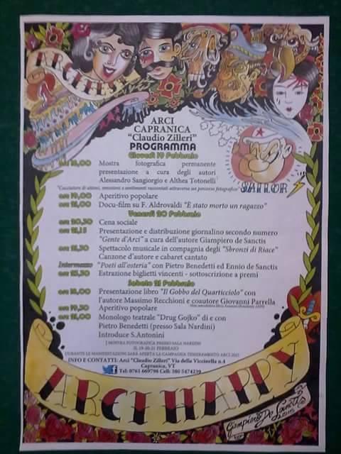 CAPRANICA – Sabato 21 febbraio, nell’ambito della rassegna Arcifest, coordinata dal Circolo Arci Claudio Zilleri, una giornata organizzata assieme al Cp Anpi Viterbo