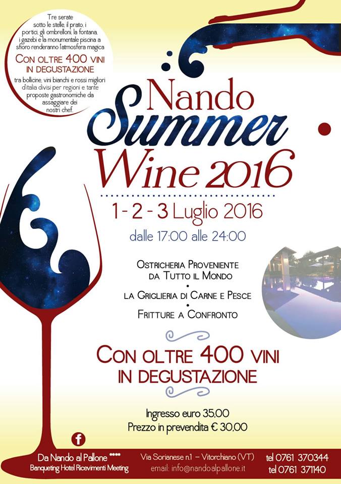 Dal 1 al 3 luglio, infatti, il ristorante Da Nando al Pallone ospiterà Nando Summer Wine, con oltre quattrocento vini in degustazione accompagnati da prelibatezze a base di pesce.