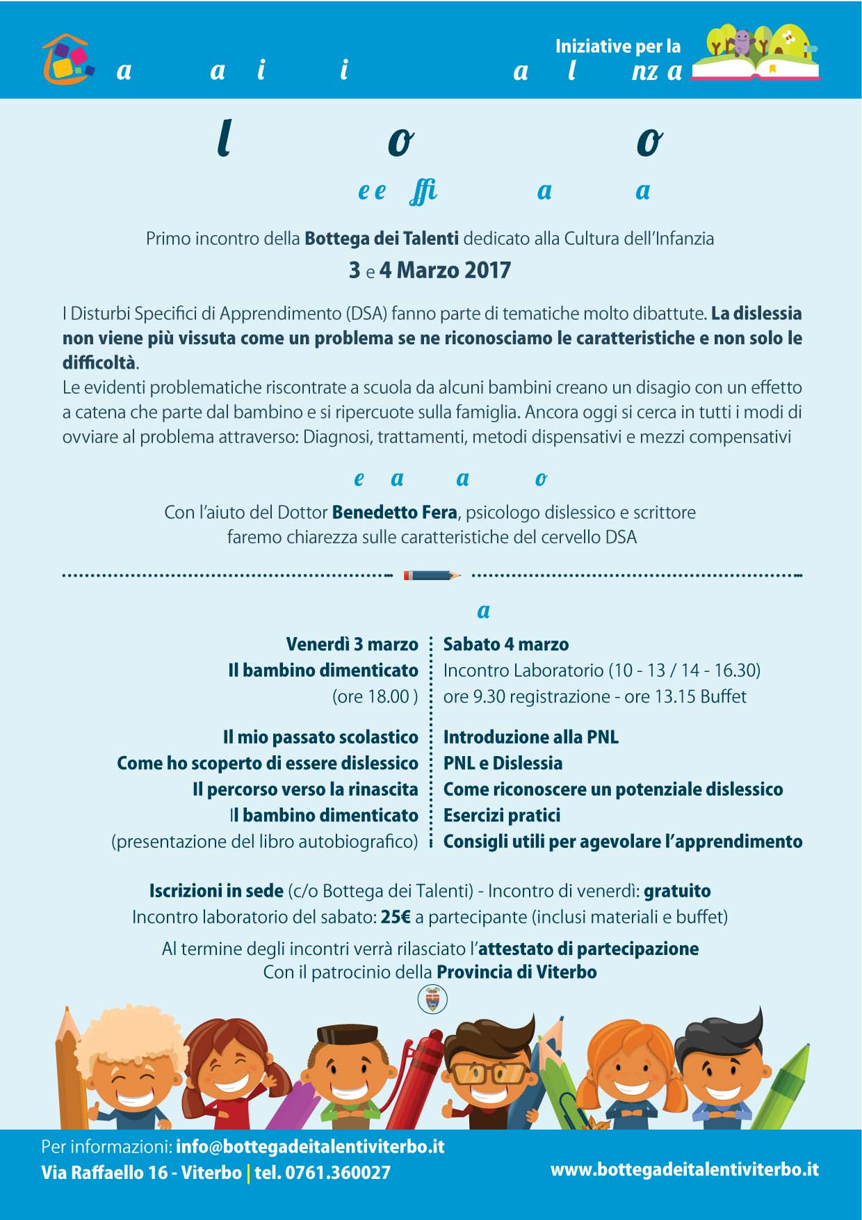 VITERBO – Nei giorni 3 e 4 Marzo presso “la Bottega dei Talenti” di Viterbo, verrà affrontato il tanto discusso tema della dislessia.