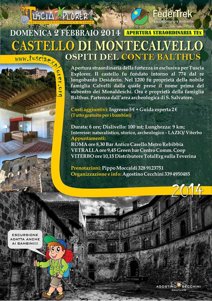 Domenica 9 febbraio escursione ed apertura straordinaria del Castello di Montecalvello, con partenza dall’area archeologica di S. Salvatore e arrivo al Castello di Montecalvello: l’erede del “Conte Balthus” ha gentilmente concesso l’apertura straordinaria della fortezza fondata, secondo alcuni storici, dall’ultimo re longobardo Desiderio.