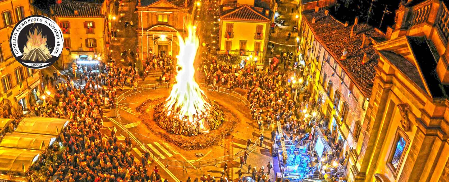BAGNAIA – Il 16 Gennaio nella piazza di Bagnaia prende vita una delle feste popolari più importanti della tradizione contadina, il Sacro Fuoco di Bagnaia, l’accensione di un enorme pila di legna che scalda l’intero paese, ogni anno, per tutta la notte.