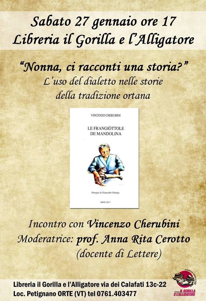 ORTE – Sabato 27 gennaio, presso la libreria Il Gorille e l’Alligatore, presentazione del libro: “L’uso del dialetto nelle storie della tradizione ortana.