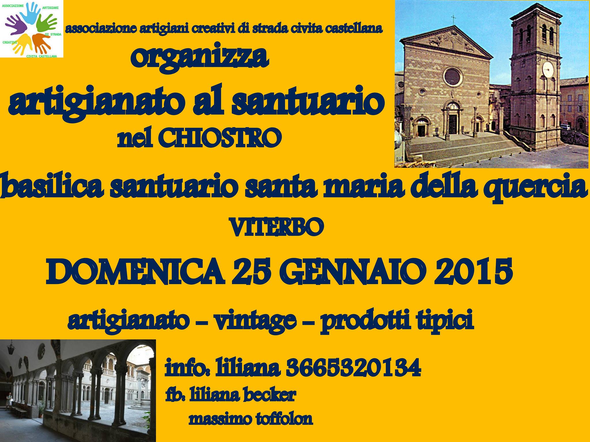VITERBO – Domenica 25 gennaio, nel contesto del bellissimo chiostro del Santuario di Santa Maria della Quercia, mercatino di antiquariato, artigianato e prodotti tipici.