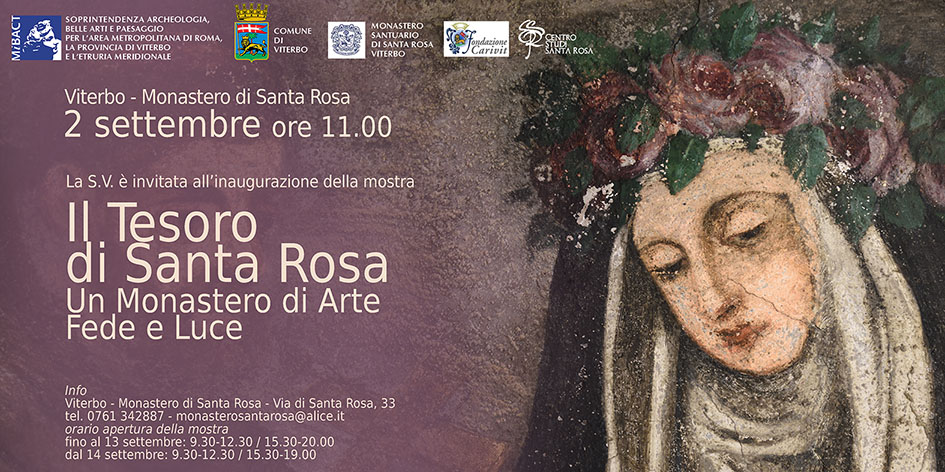 Un monastero, una giovane santa e un tesoro che per secoli è stato conservato con devozione. La mostra “Il tesoro di S. Rosa. Un monastero di arte, fede e luce”nasce dall’intento di esporre insieme per la prima volta, consegnandoli al godimento pubblico, preziosi manufatti tra cui manoscritti, documenti, dipinti, ceramiche e argenti sacri che ricostruiscono la vita della Santa e le vicende meno note del monastero.